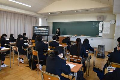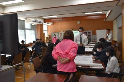 生徒は、ワークシートにメモを取りながら、講師の方のお話を真剣に聞いていました。