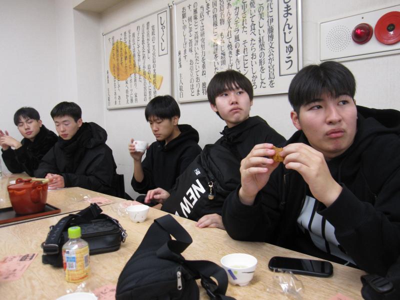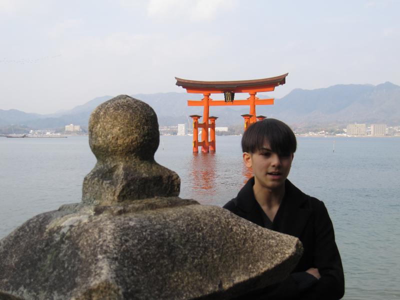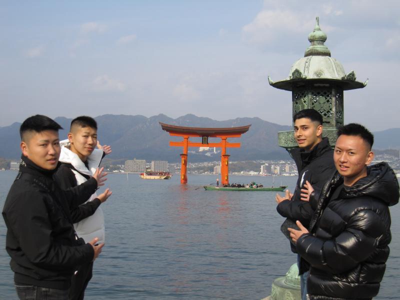厳島神社の前で写真を撮ったり、もみじまんじゅうを食べたりして楽しんでいました。
