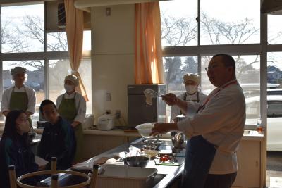 古河市役所健康づくり課、古河市食生活改善推進協議会の方々に講師をお願いし、食育と食文化伝承を兼ねた調理実習を行っていただきました。