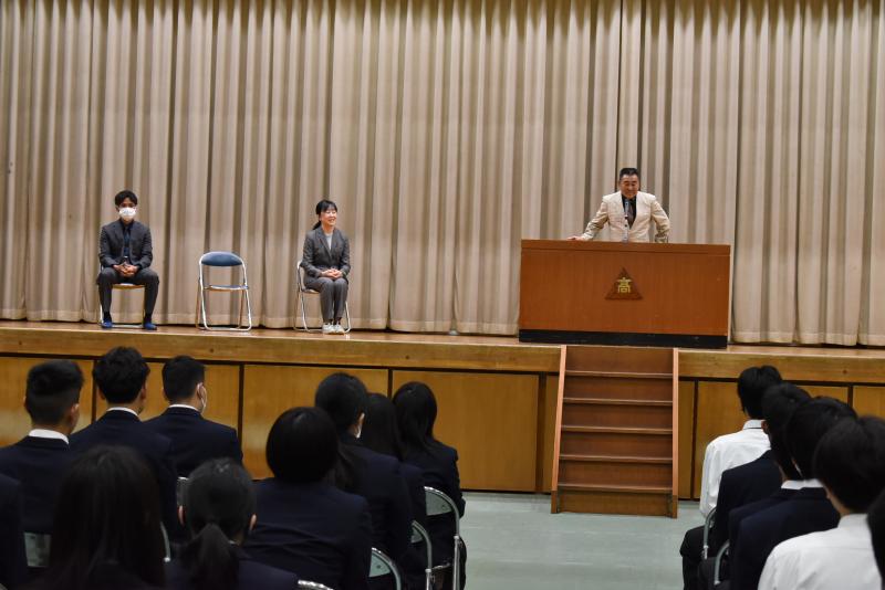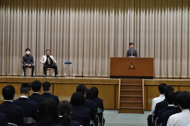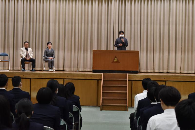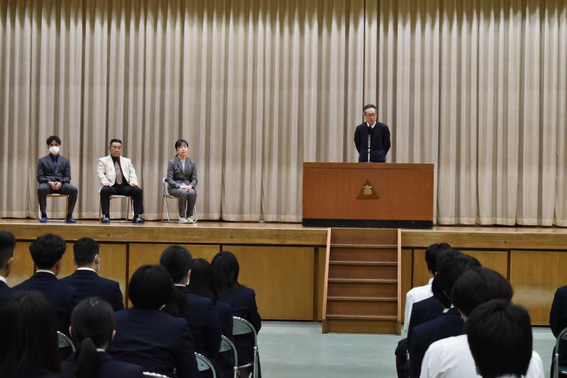 離任される3名の先生方が、檀上から三和高生に向けた最後のメッセージを届けてくれました。
