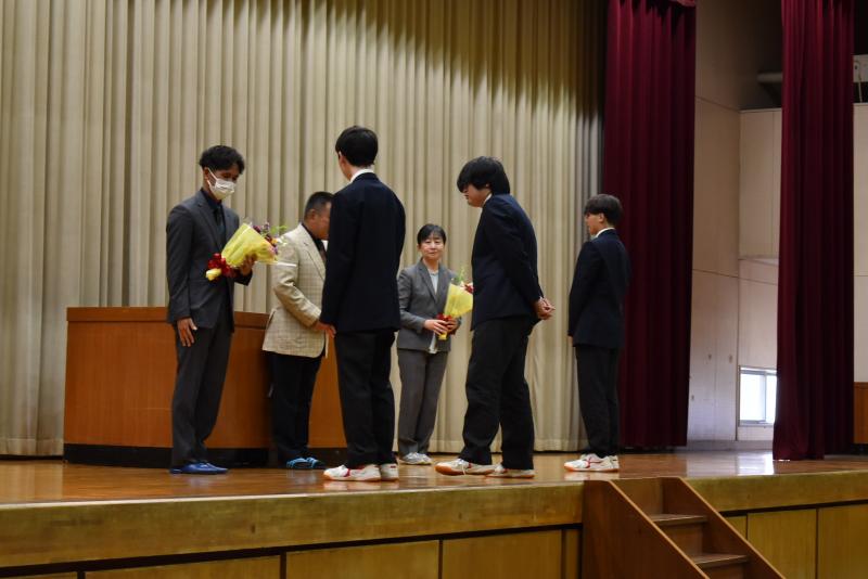 その後、生徒代表として生徒会長からお礼の言葉が述べられ、生徒会からは花束が贈呈されました。