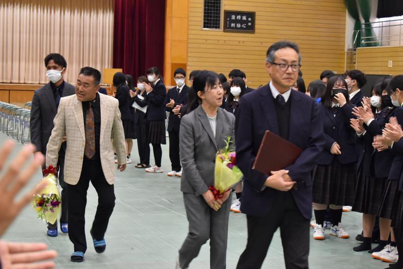 最後、別れを惜しむ生徒が花道を作り、離任される先生方に感謝の気持ちを伝えました。